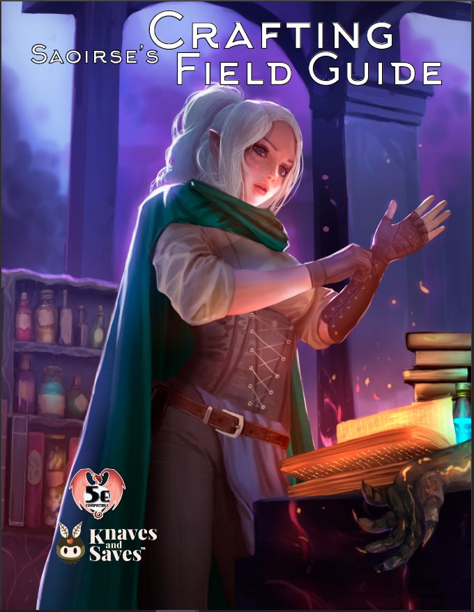 Saoirse’s Crafting Field Guide is an 82-page resource that adds a scalable, future-proof crafting system to your 5th Edition game!