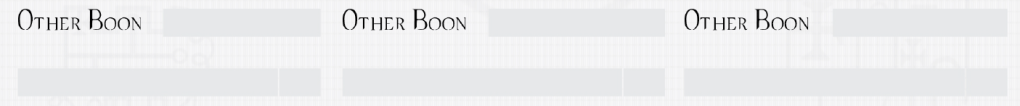 Boons are like spells and add mechanical nuance to the character. They provide special capabilities that a base character otherwise couldn’t get, and much like paths, you tend to select a handful that you buy into, getting more powerful boons over time.